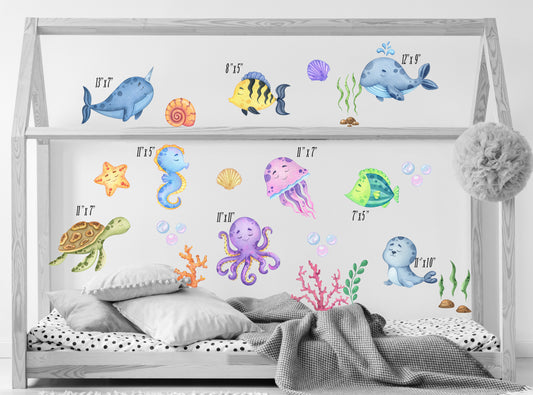 Sea Animals Wall Decal Under The Sea Baby Animals Wall Sticker Nursery Décor Ocean Decal Removable Kids Room
